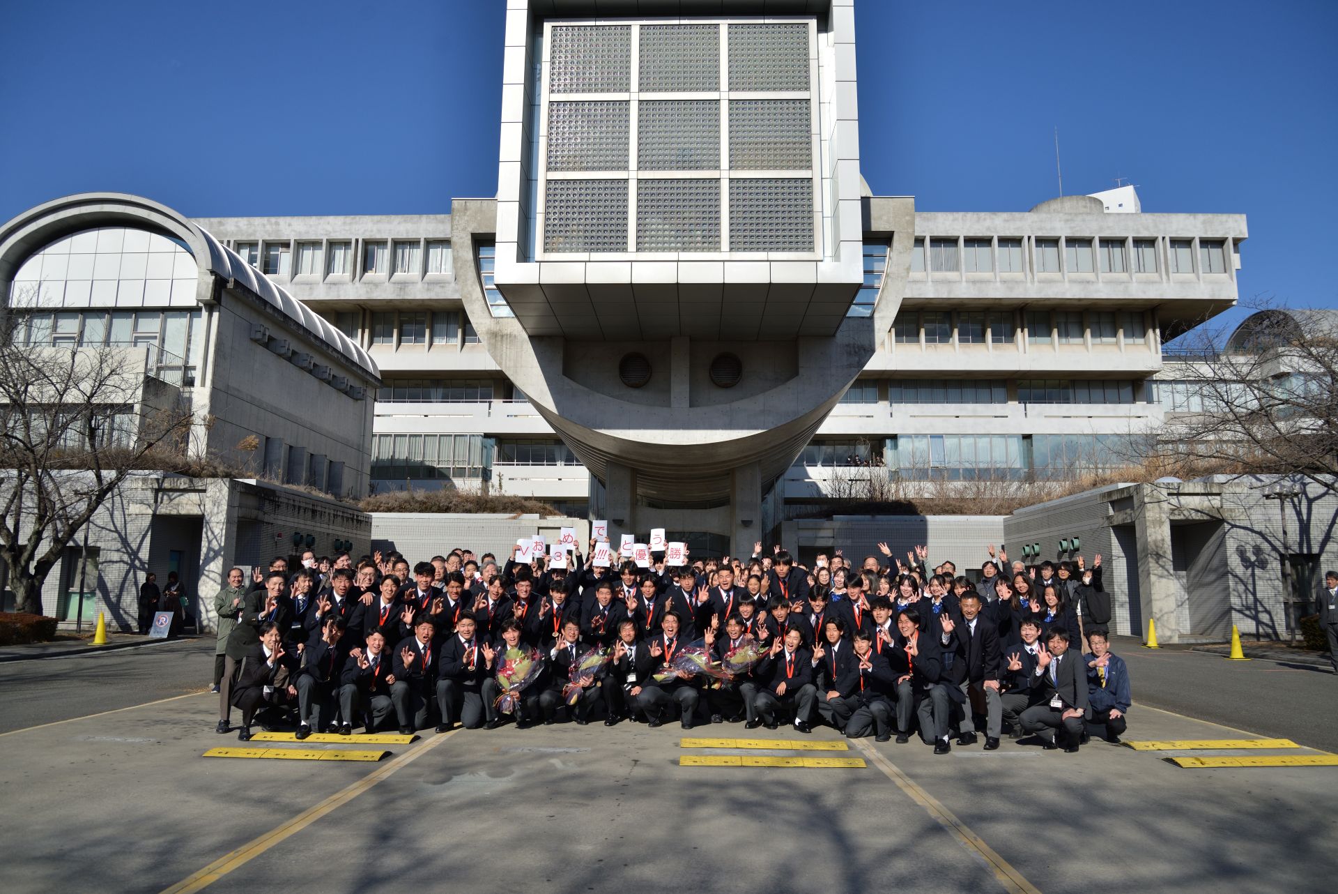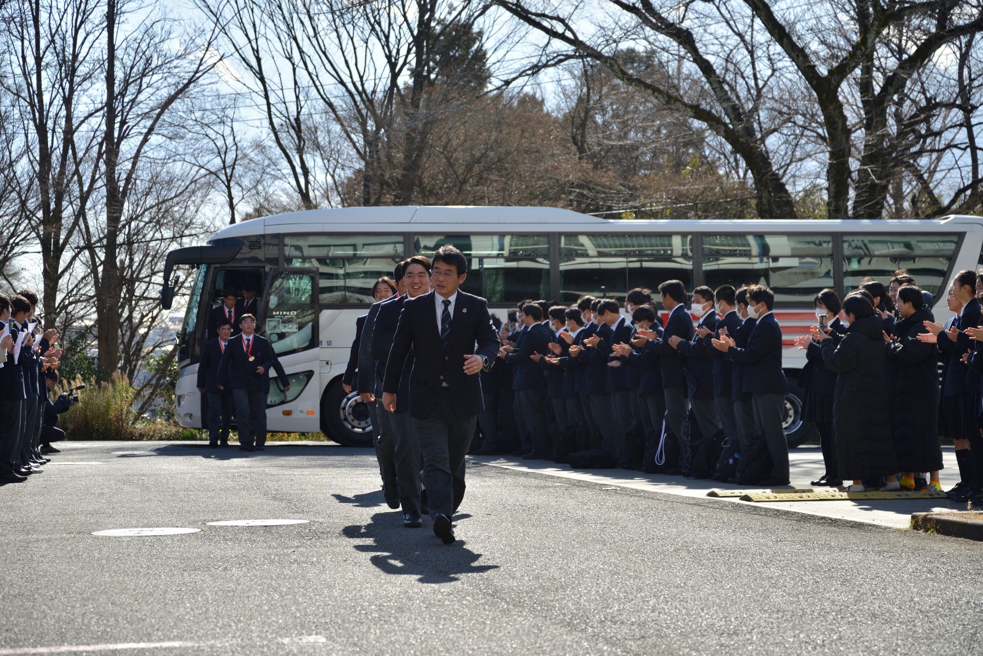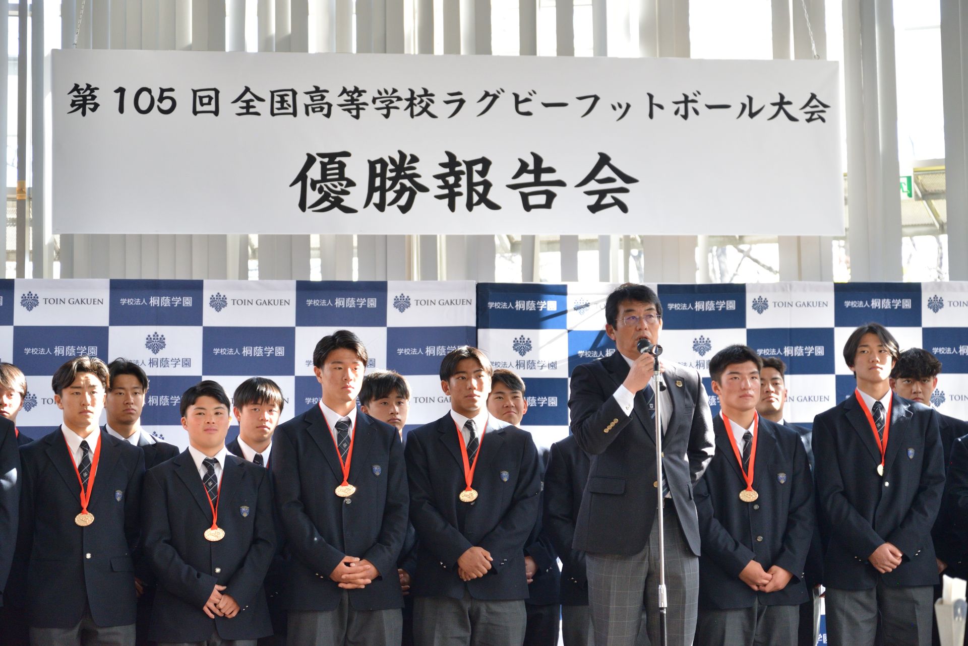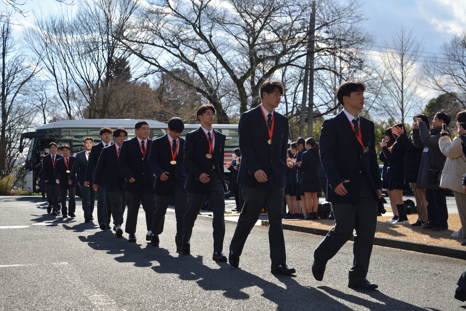 第105回全国高等学校ラグビーフットボール大会において、史上6校目となる3連覇を達成したラグビー部が、決勝戦翌日の1月8日(木)に学校へ凱旋いたしました。