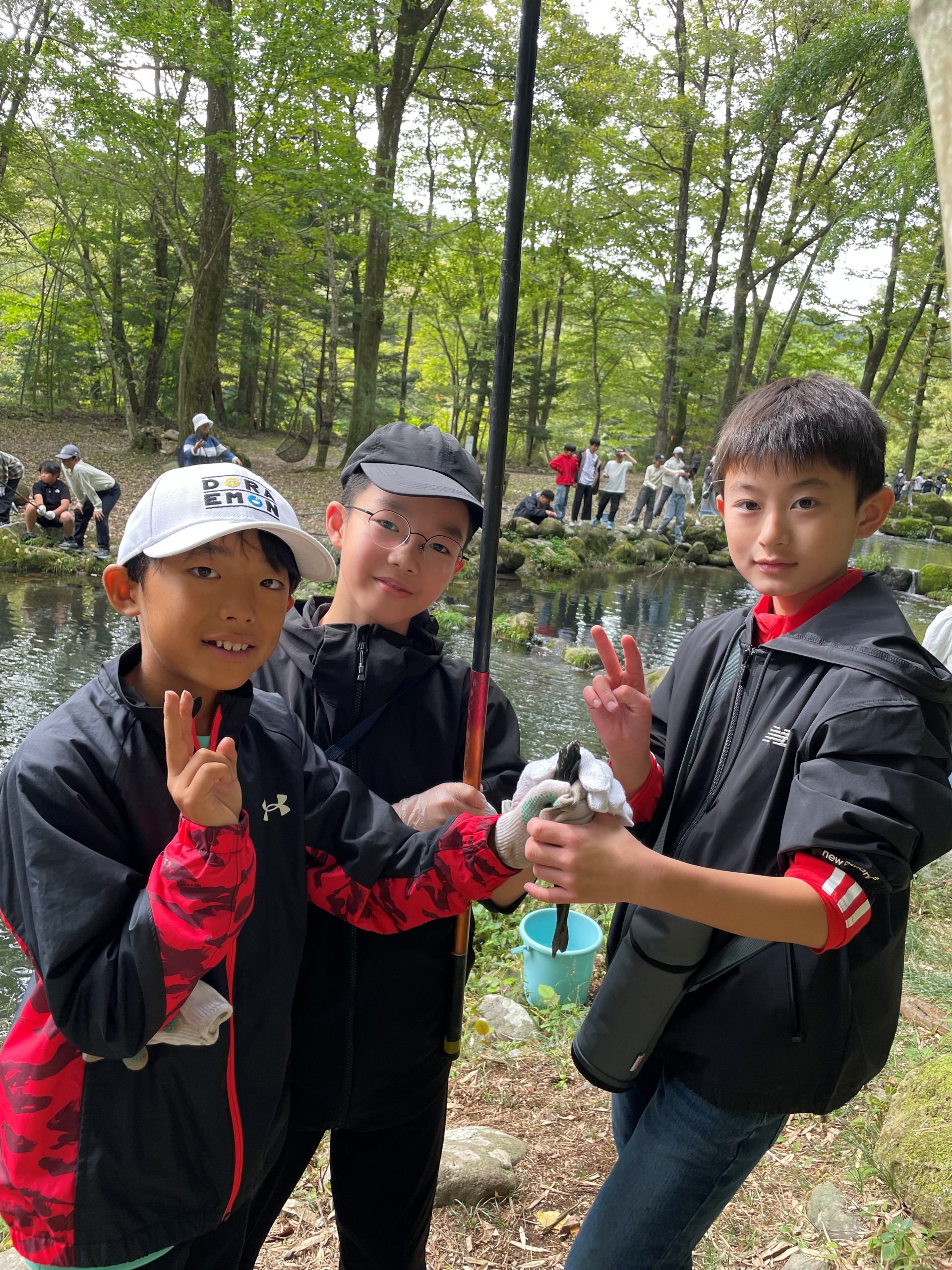 最終日には渓流釣り体験を行いました。初めての釣りに挑戦する子どもたちは、最初こそ苦戦していましたが、友だち同士でアドバイスを送り合いながらひとつずつ課題を乗り越え、最終的には魚を釣り上げる成功体験を味わいました。この日は特に、自ら考え挑み続けるチャレンジ力と、仲間と助け合う協調性が存分に発揮されていました。