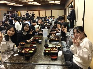 2日目は、グループごとの自由行動です。事前に自分たちで立てた計画をもとに、伏見稲荷や嵐山、祇園など、思い思いの場所を巡り、時間管理や公共交通機関の利用など、主体的に判断し、行動する力が試されました。事前にオンラインでミーティングを行った、京都文教大学の学生4名も現地でサポートしてくださいました。京都で出会った外国人観光客に英語で話しかける活動にも挑戦し、学校で学んだ英語が実際に通じる喜びを味わいました。
