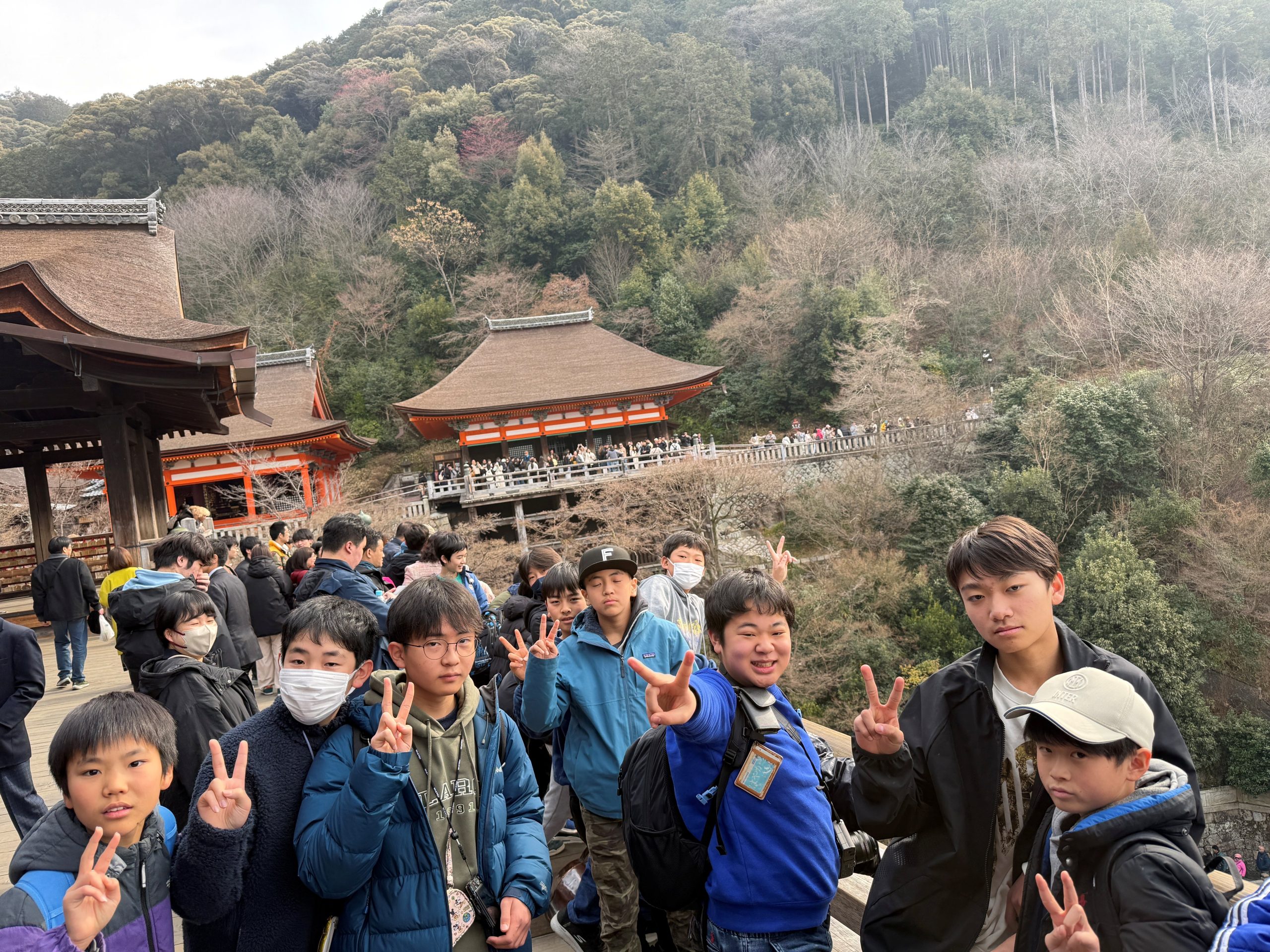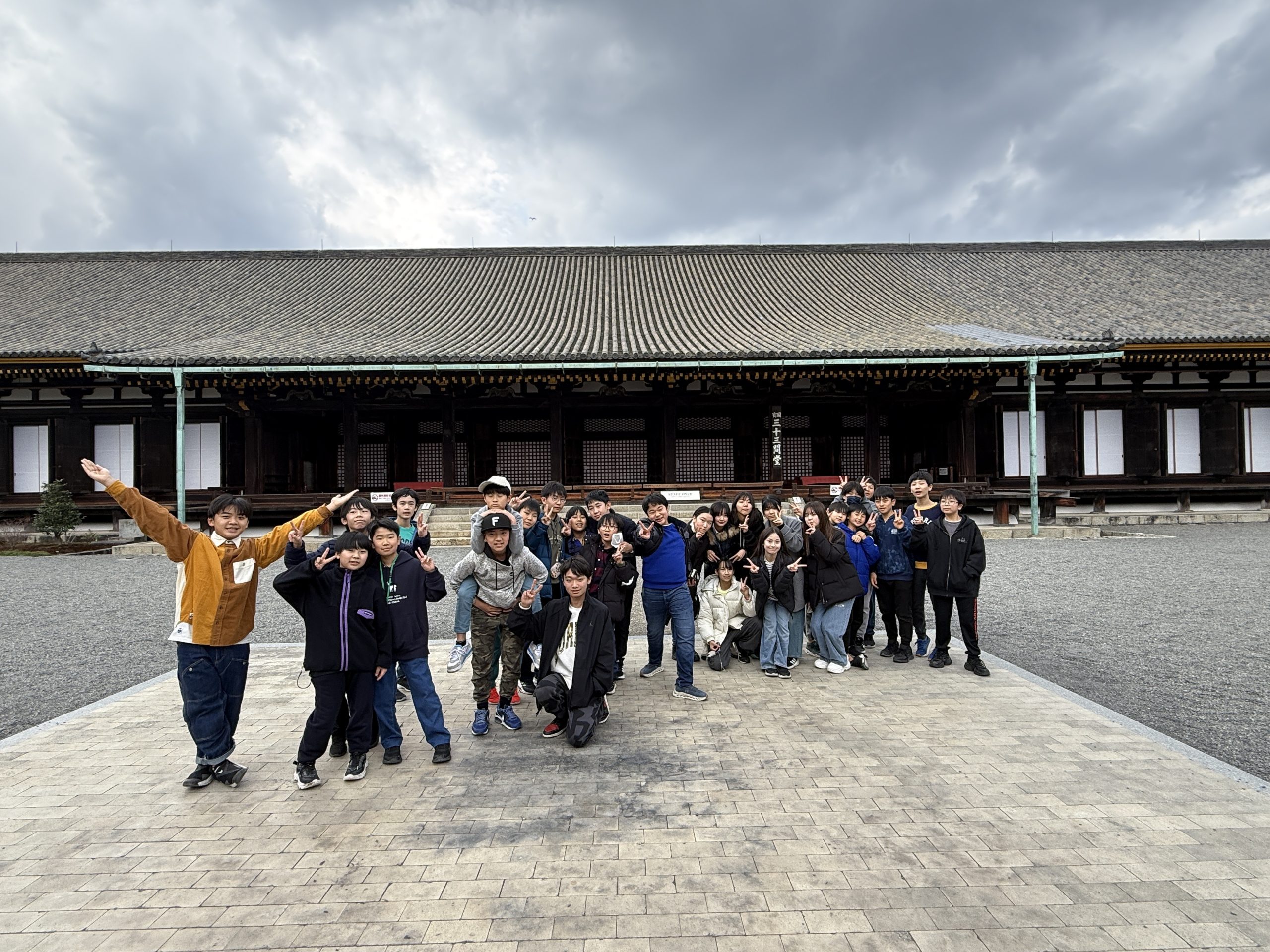 3日目は、銀閣寺、清水寺、三十三間堂を見学し、清水坂でのフリータイムでは班ごとに最後の交流を深めました。体調不良や疲れが見られる友だちを気遣い、声を掛け合う姿や、班行動の中で互いに譲り合う姿などから、思いやりや協力の大切さを改めて学んだ3日間となりました。