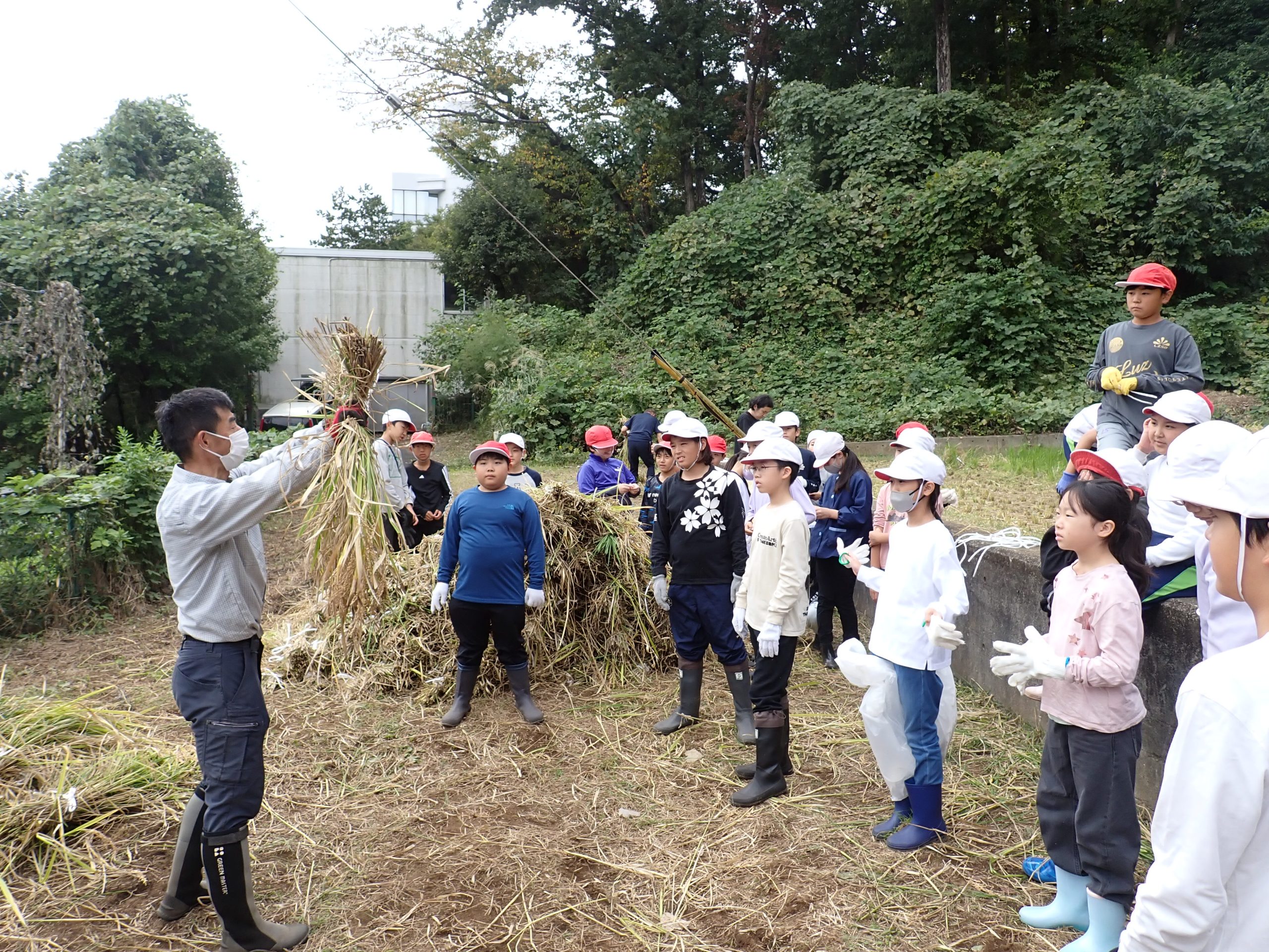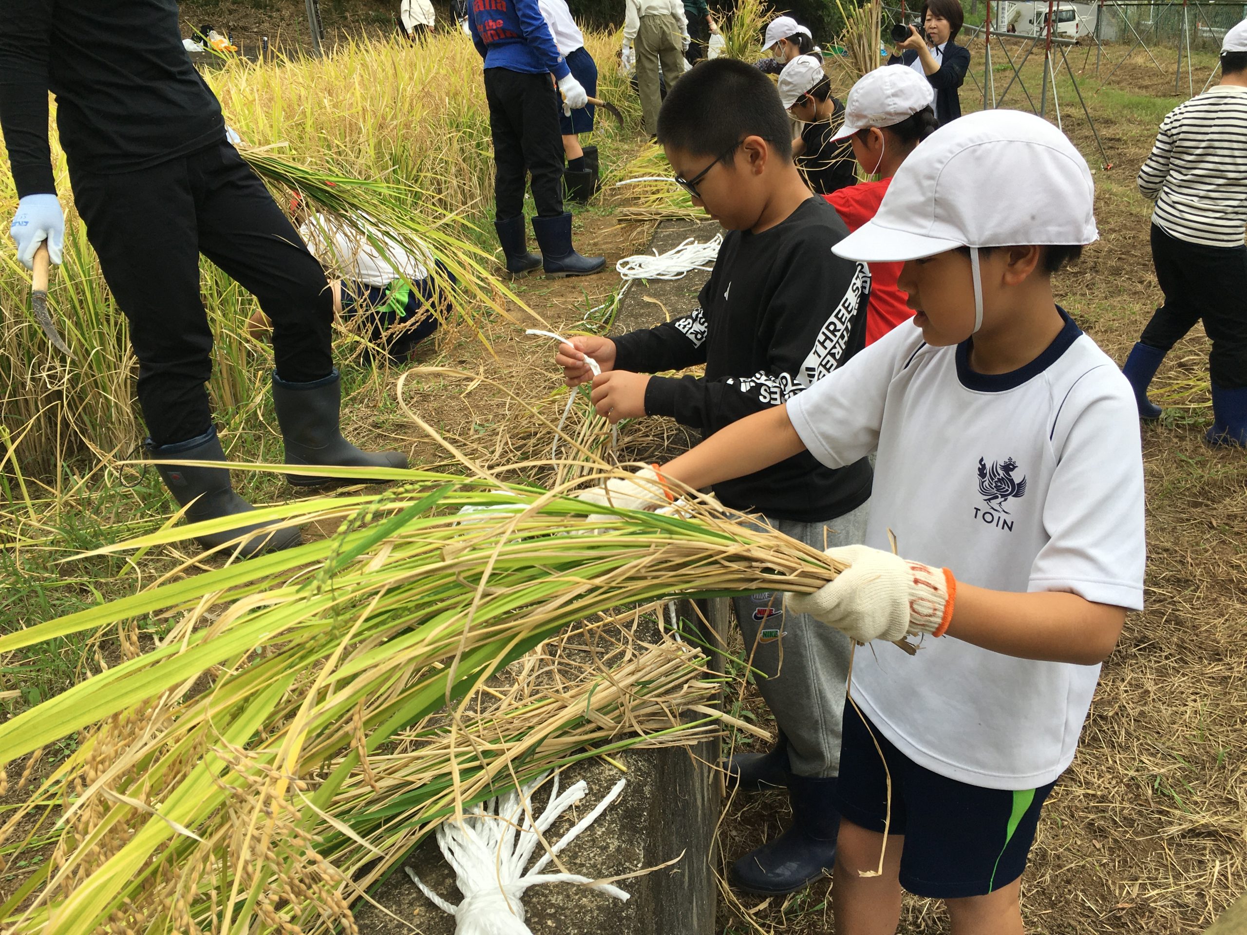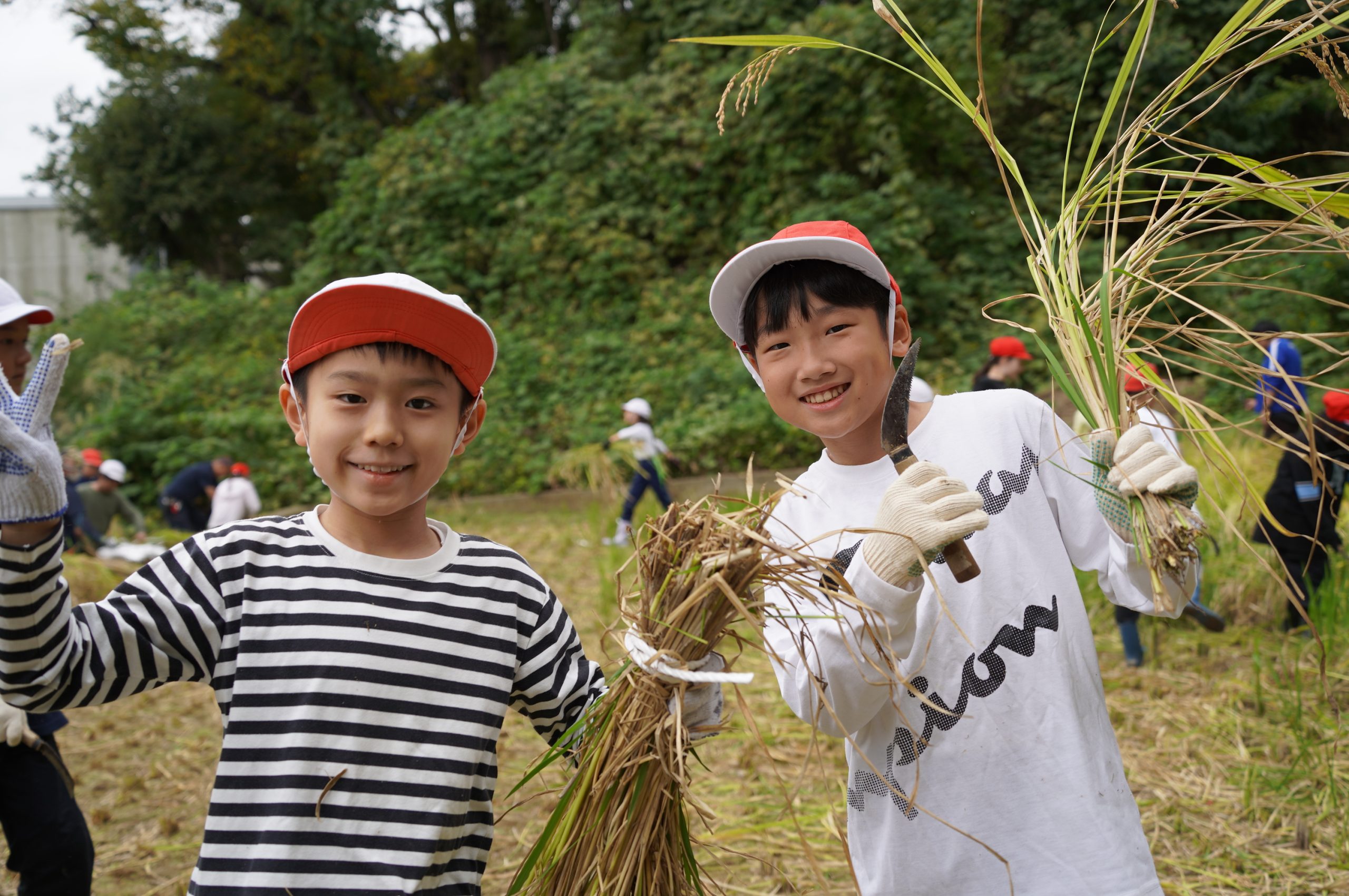 子どもたちからは、「ほぼ一年をかけて行う米作りはとても大変だと感じた。桐蔭の田んぼだけでもこの大変さだから、農家さんはもっと苦労していると思う。」「米作りは苗を植えたり除草したり、稲を刈って干したりと重労働。だからこそ米の高騰につながっているのかなと思った。」といった、体験を通して学習内容を結びつけた感想が聞かれました。そして、今年は第四幕【調理実習】へと続きます。自分たちで刈り取った稲を脱穀・精米し、精米されたもち米を使って「おこわ」を作る予定です。「植える」「育てる」「刈る」「食べる」という一連の流れを自分たちの手で体験することで、子どもたちはさまざまな視点から考え、感じ、思いを深めていくことでしょう。営繕部の皆様をはじめ、ご協力いただいたすべての方々に心より感謝申し上げます。