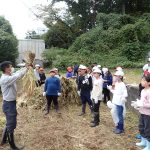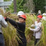 黄金色の稲穂を刈る作業は、予想以上に重労働で腰が痛くなりました。そして、その刈った、稲を束ねるのも、かなりの力が必要でとても疲れました。この大変さを身をもって体験したことで、スーパーや、お米屋さん、インターネットのショップで見るお米一粒一粒が、どれほどの手間と汗の結晶であるかを実感し、お米を作る素晴らしさを感じました。これからは、食べ物への感謝の気持ちを持って残さずいただこうと思いました。