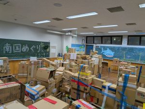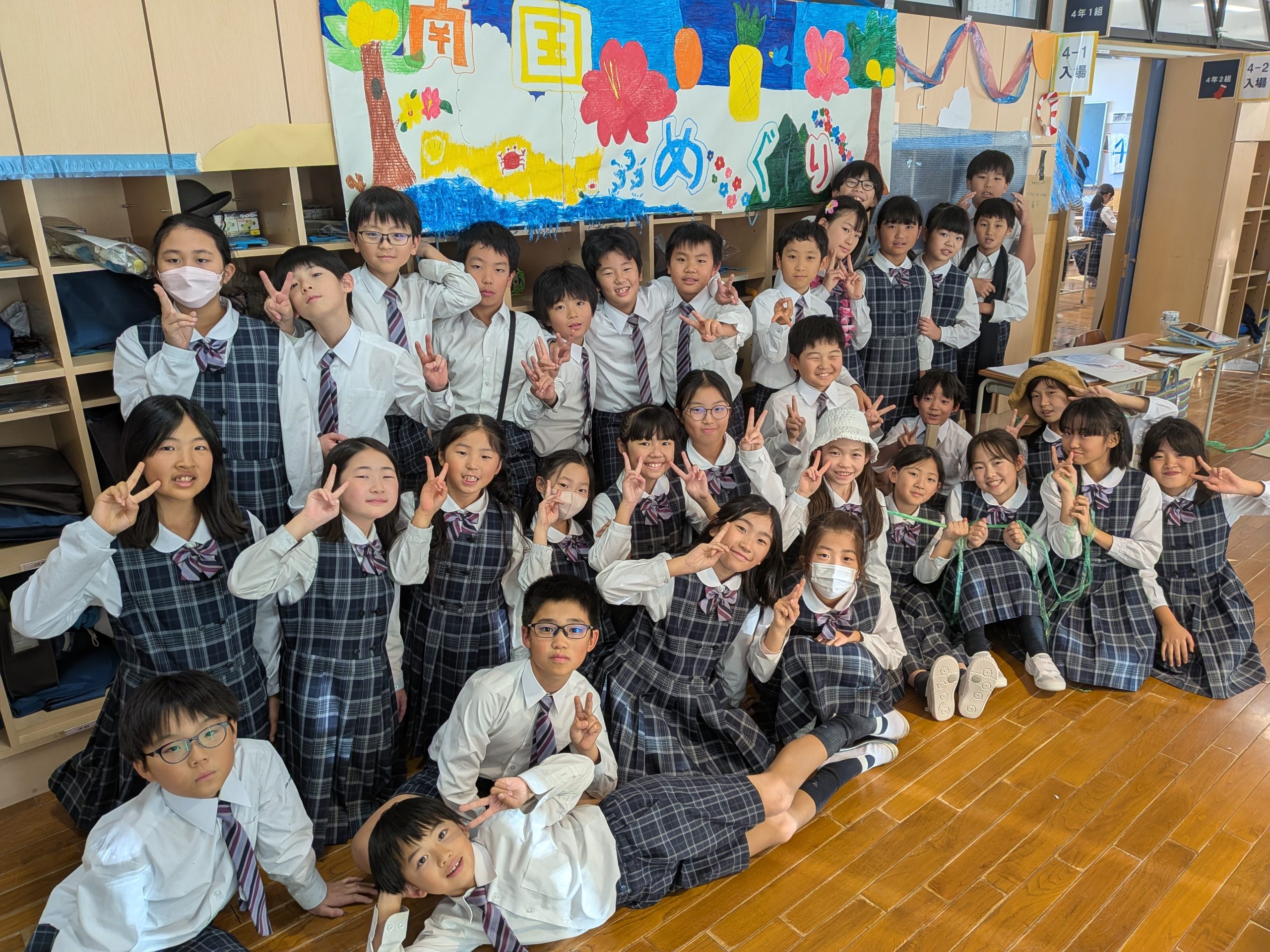 4年1組は「南国めぐり~寒い季節だからこそ心をあたたかく~」というテーマで、探検型スタンプラリー×ユニバーサルデザインの企画を実施しました。迷路を探検し、チェックポイントのチャレンジをクリアしてスタンプをもらい、ゴールを目指す企画です。
