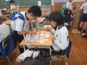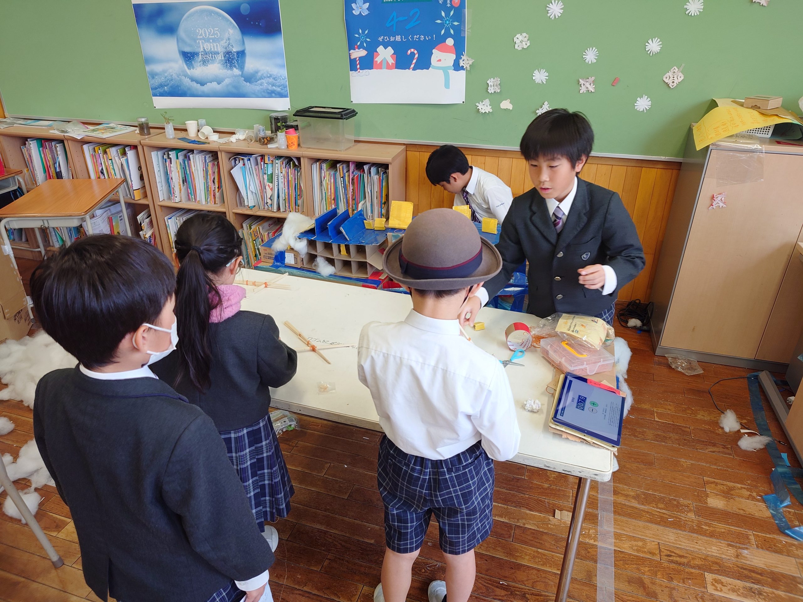 ブースごとの準備では、どの年齢の人が来ても参加しやすい企画のアイデアを出し合い、難易度をお客さんが選べるようにするなど、誰もが楽しめる企画を作り上げていきました。また、細かい作業や大胆な制作など、様々な場面で一人ひとりが自分の得意なことで存分に力を発揮しました。意見がまとまらない場面では、話し合いでお互いの考えを調整し、より良いものを作り上げようとしていました。本番は全員が責任を持って役割を果たし、大成功で終わりました。新しいことに挑戦するために、話し合い、協働した経験は一人ひとりに大きな成長をもたらしてくれたと思います。