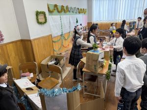 当日、クラス内は皆の楽しむ様子にあふれ、来場者も満足した笑顔で帰る大成功を収めました。子どもたちはこの協働と創造の経験を通して、大きな成長を遂げられたと思います。