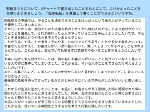 お客さんを迎えたときにどんな対応をするか、前日準備までのところで各グループで話し合っていました。しかし、当日いざお客様を前にすると、想定していなかったことも色々と起こり慌てている様子もありましたが、一人でも多くのお客様に自分たちの企画に触れてもらいたい、楽しんでもらいたいという気持ちで一生懸命おもてなしをすることができました。