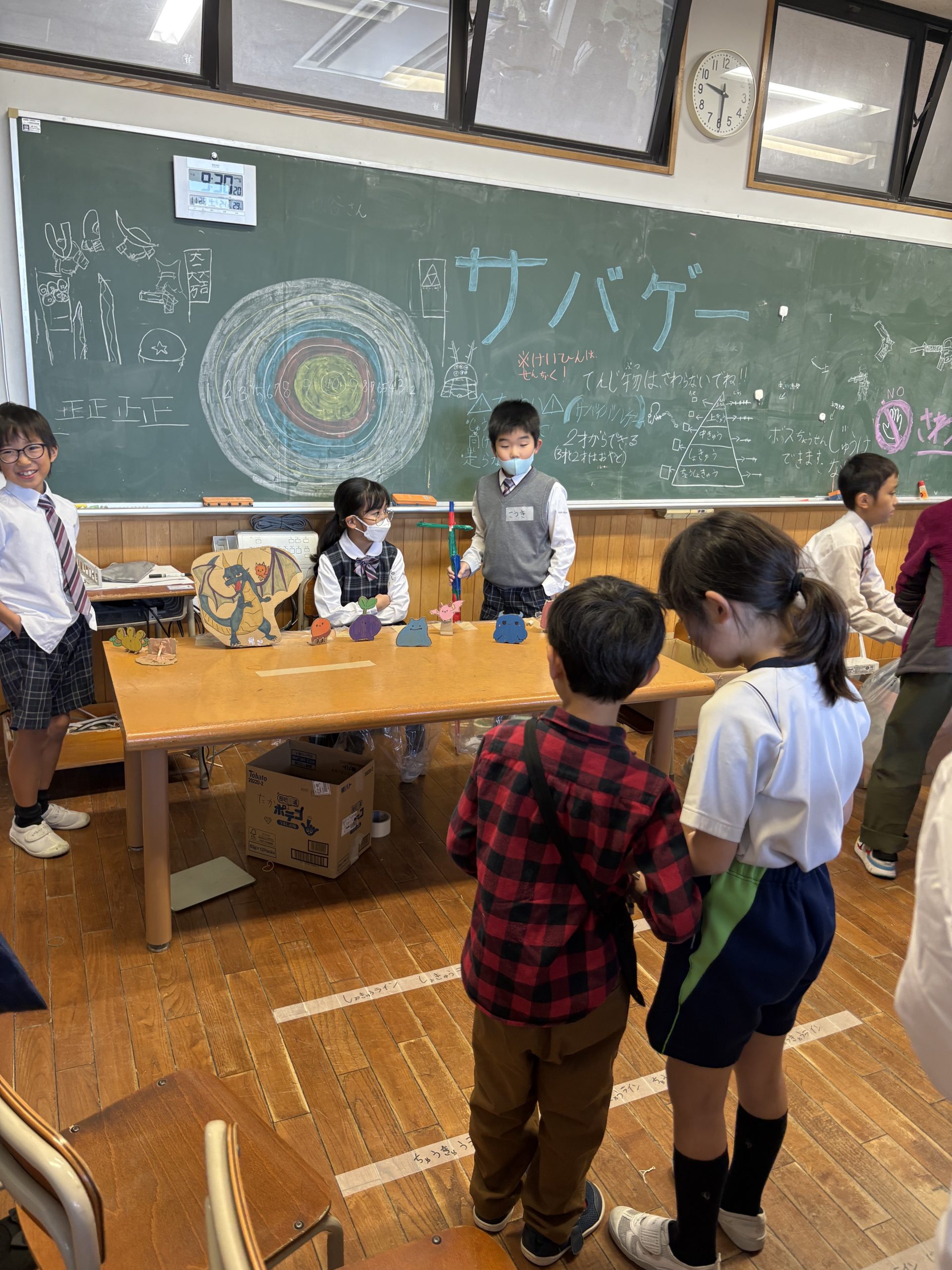 クラスを3か所に分け、「おばけやしき&射的」「クラフト」「サバゲー(サバイバルゲーム)」の3つの企画を行いました。それぞれがやってみたいことを表現しつつ、お客さんに楽しんでもらうためにはどうすればよいかを考えて準備を進めました。