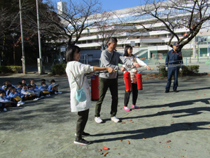 先生たちも消火器体験をして、万が一の時のために備えることができました。心積もりをしておくと大きく違います。先生たちにとっても大事な経験になりました。