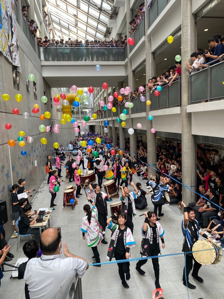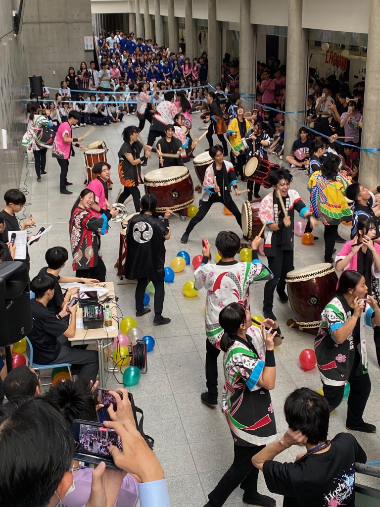 オープニングを飾った和太鼓部。あっという間に全生徒を盛り上げていきます。
