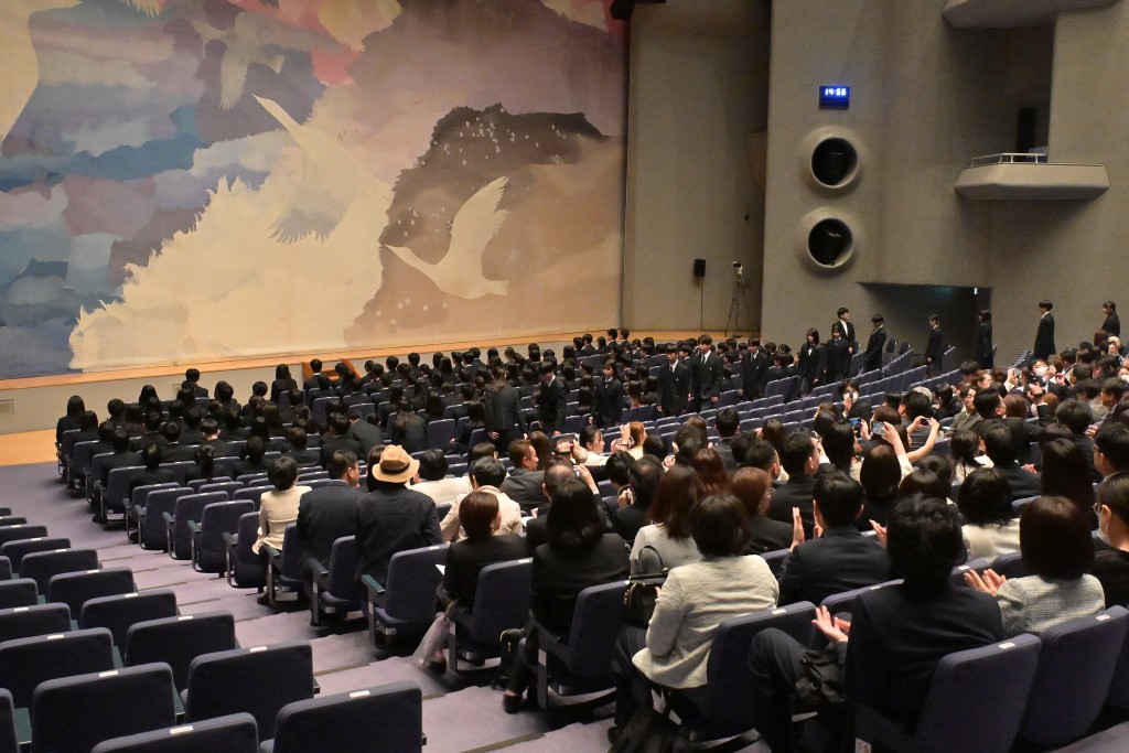 新入学者の発表です。担任の先生が一人ひとりの氏名を読み上げ、その場で起立していきます。