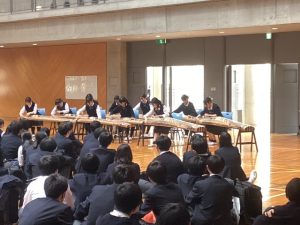 3校時終了後、まずはメインアリーナでのクラブ発表からスタート。