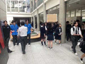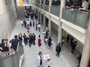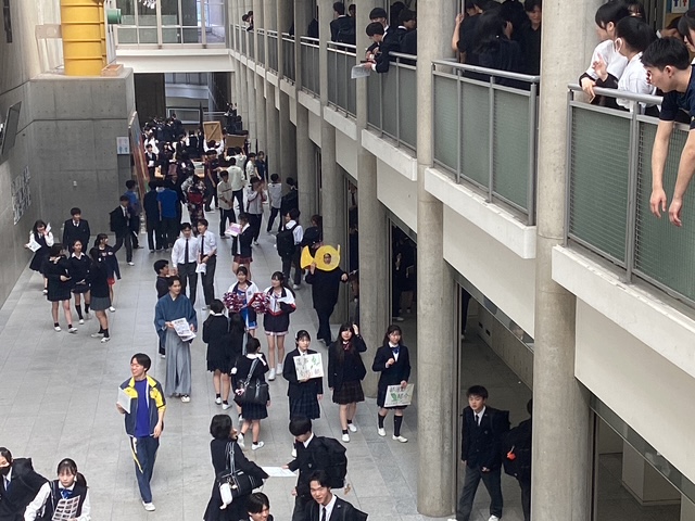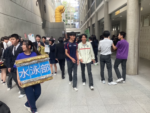 マルチパーパスや廊下では、何とか新入生をブースへ呼び込もうと、大きな声が飛び交っていました。ものすごい熱気。