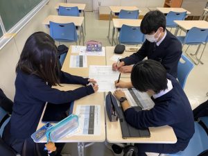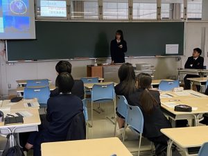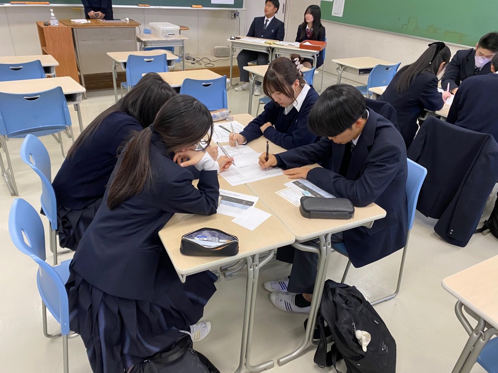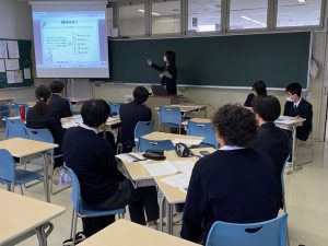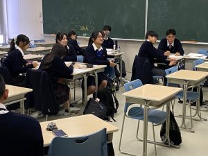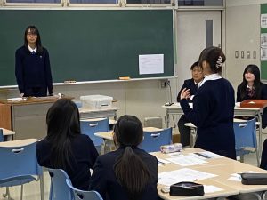 最後は質疑応答の時間です。これまで行われてきた発表会の課題として「質疑応答の活性化」がありました。今回は実行委員生徒の発案で、「質問をあらかじめ考える」というワークを導入することに。事前のゼミやロングホームルームでこのワークを行った上で臨みました。