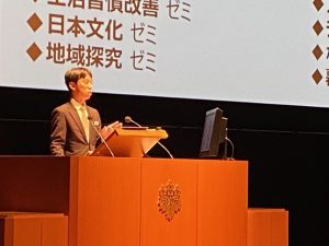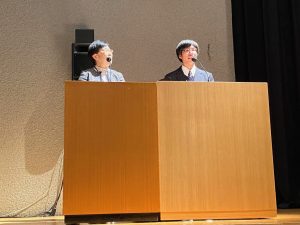 また、入試広報・向山先生との掛け合いも披露してくれました。──「母親と息子ではありません」笑。