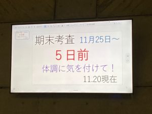 桐蔭学園では、11/25(火)から2学期期末考査がはじまります。いよいよ5日前となり、放課後は完全に考査モードに入っています。