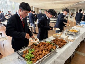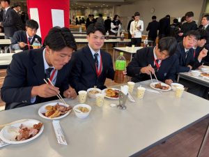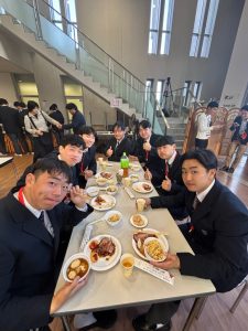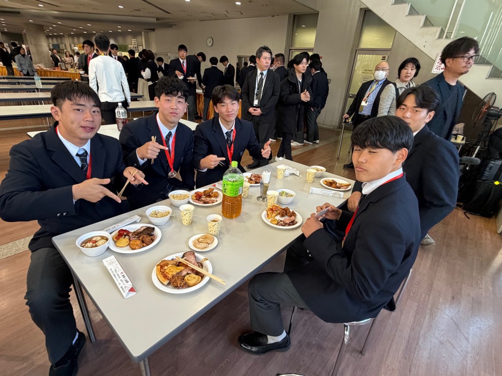 大会中はコンディション維持のため、脂質の多い食べ物(唐揚げ、カレーなど)は一切口にしていなかった選手たち。久しぶりの高脂質食に満足そう笑。