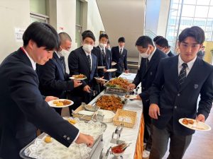 ちょうど昼時ということで、選手たちには食堂特製の食事が振る舞われました。当然のことながら、みんな本当によく食べます。