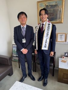 3/11(水)、世界最古のメンズコンテストである「MANHUNT INTERNATIONAL」の日本代表に選出された雨谷拓矢さん(本校46期生)が来校しました。雨谷さんは本校水泳部在籍時、高1で日本高校記録を更新し、高3では主将を務めたアスリートです。