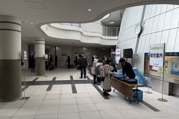 総合案内前(ホールロビー)から受験生受付へ向かいます