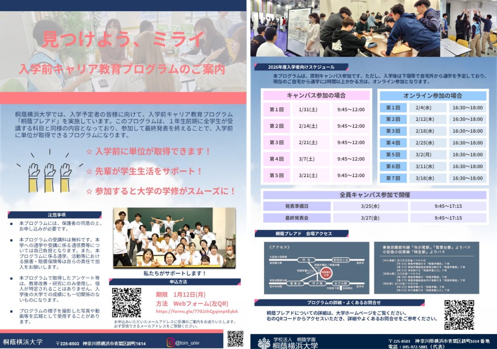 桐蔭横浜大学 入学予定のみなさまへ