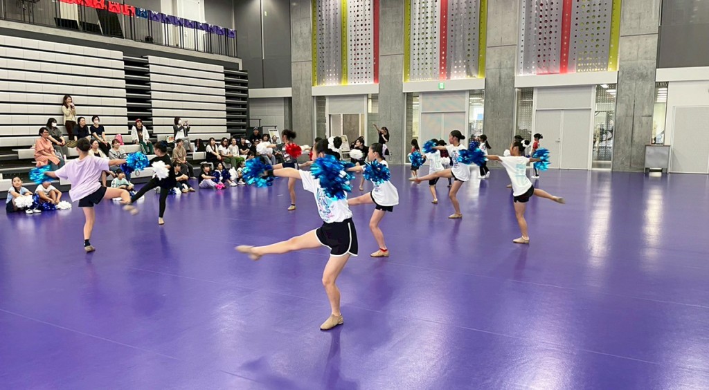 げんきな音楽に合わせて、ポンポンをつかってかわいく、かっこよくおどります。