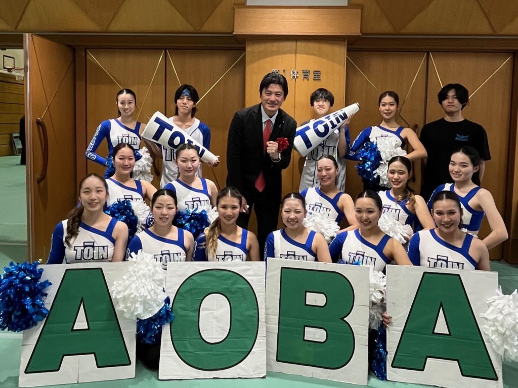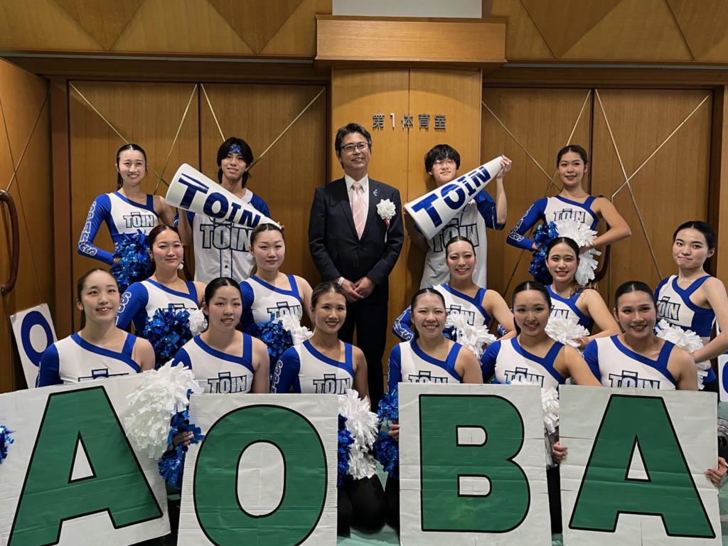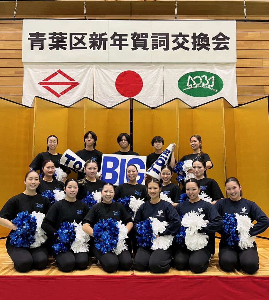 「青葉区賀詞交換会」にて、チアダンス部がパフォーマンスを披露しました 2026年1月15日 1月10日(土)に実施された「青葉区賀詞交換会」にて、本学チアダンス部がパフォーマンスを披露しました。 地域の皆様が一堂に会する晴れの舞台での演技は、普段のスポーツ応援とは異なる緊張感がありましたが、新年の門出に華を添えられるよう、精一杯パフォーマンスに励みました。 法務副大臣の三谷 英弘さま、青葉区長の中島 隆雄さまとも、一緒に撮影をいただきました。大変貴重な機会をいただき、誠にありがとうございます。