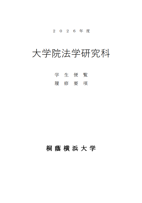 大学院法学研究科_学生便覧・履修要項 大学院法学研究科_学生便覧・履修要項 2026年度入学生用 2026年度入学生は、 こちら をご覧ください 2025年度入学生用 2025年度入学生は、 こちら をご覧ください 2024年度入学生用 2024年度入学生は、 こちら をご覧ください