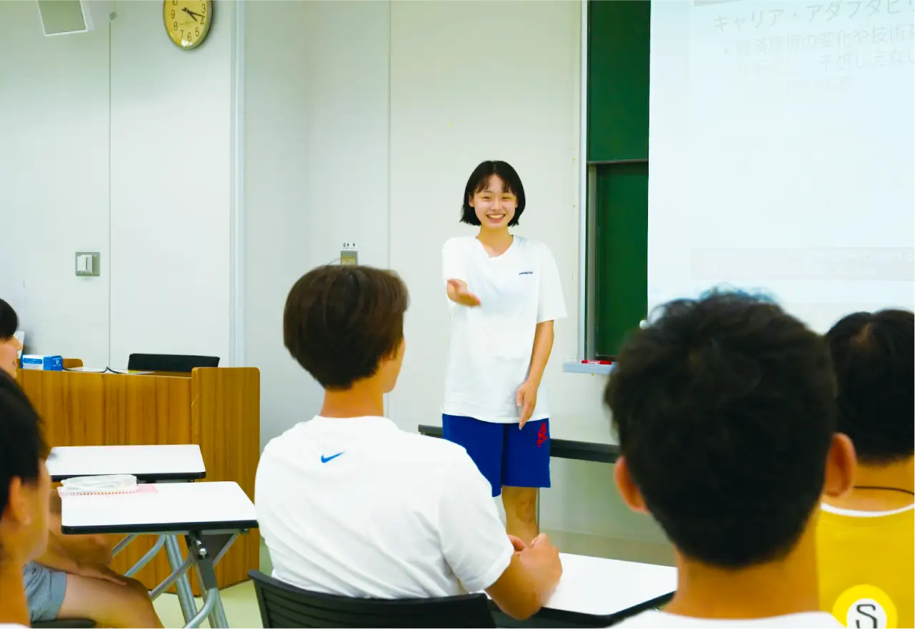 「部活動がすべての4年間」ではなく「将来、社会で活躍するためには何が必要かを考えて過ごす4年間」のために、学生が自身の力で未来を切り拓くためのチカラを養う科目として、履修推奨科目を設定しています。
