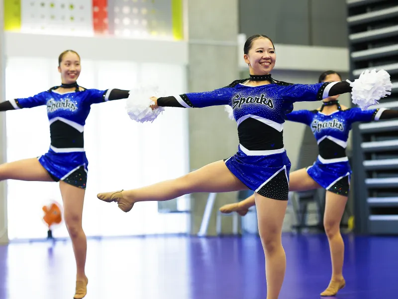 チアダンス部SPARKSは、Pom、HipHop、Game Dayの3部門で活動し、地域イベントやスポーツ応援にも積極的に参加しています。創部7年目にして、2025年には世界大会「ICU大学ワールドカップチアリーディング選手権」に初出場を果たしました。目標は「ダンスで日本代表に」。少人数ながらもメンバー同士が個性を活かし合い、基礎からしっかりと練習を重ねてダンス技術と人間力を高めています。競技会への出場だけでなく、地域貢献やスポーツ応援、子どもたちへのダンス指導など幅広く活動しています。今後も感謝の気持ちを忘れず、最高の演技を届けるために全力で取り組んでいきます。